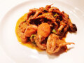 ナポリの名物、タコのトマト煮込み「アッフォガード(溺れ煮)」。 イイダコを使って前菜としてご提供します。タコ自体から出る水分と白ワイン、トマトで、タコが「溺れるように」煮込まれていくので、この名前がつきました。 タコの旨みがぎゅっと凝縮されたようなこの料理は、鼻から鮮烈な香りが抜けていきます。ビールや白ワインにもピッタリ。イカ・タコ好きにはたまらないひと皿です。